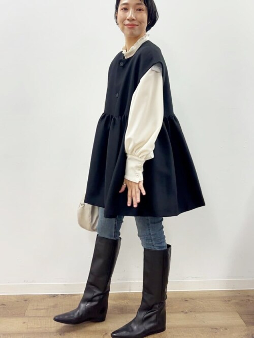 ハレの日にも活躍する ギャザージレは、 重ねるインナートップス、ボトムで、 印象を変えることができる優秀アイテム。 お仕事での日常使いはもちろん、 七五三や保護者会、入卒式などのイベントの時にもばっちり。 クローゼットにあると、 安心できますよ♪