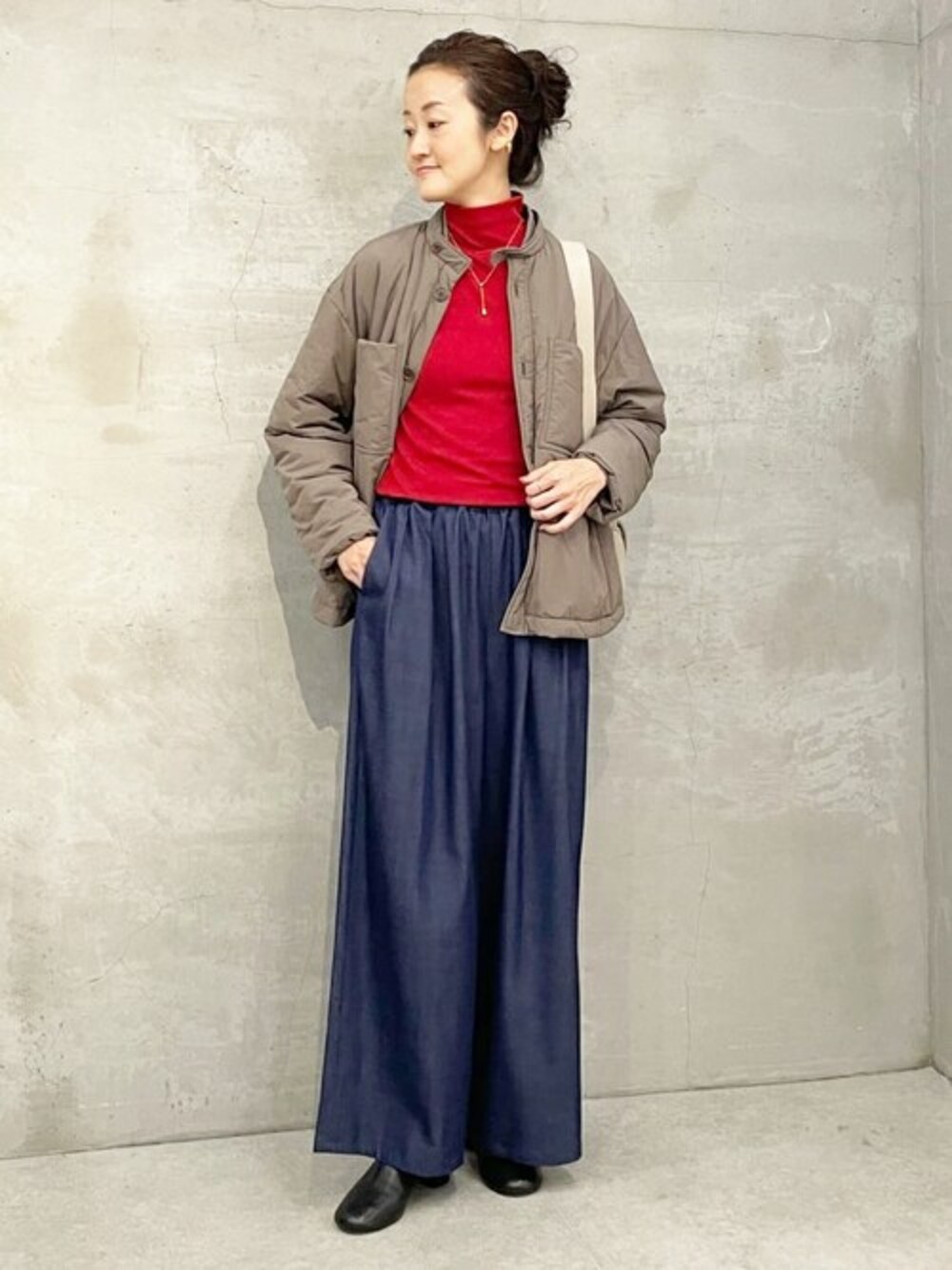 美シルエットなタックワイドパンツ。 ワイドシルエットですが落ち感がある生地ですっきり見えます。 ウエストはオールゴムでタック入り。 程良いボリューム感で腰回りもカバーしてくれます。 ブラックはジャケットなど合わせれば お仕事やフォーマルにも使えます◎ ブルーはより生地に光沢感があるので、 デニム調ですがラフすぎず上品に合わせられます。