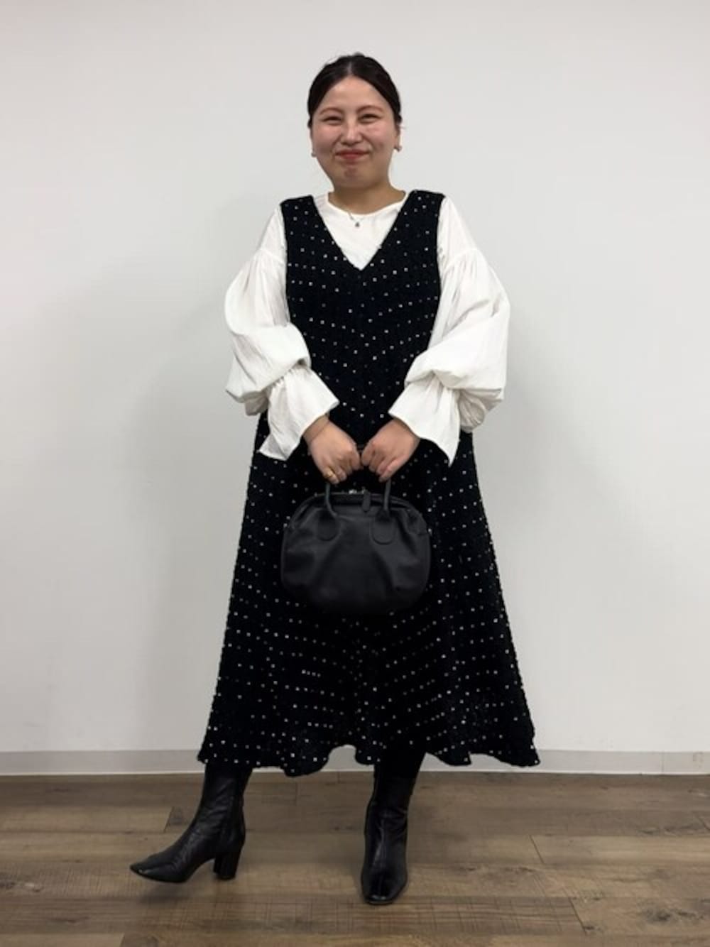 BEARDSLEY(BEARDSLEY)のワンピース「ドットツイードフレアーワンピース」を使ったコーディネート