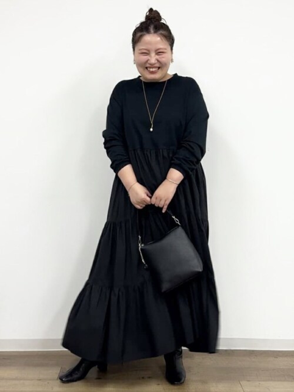 【ワンピース】 ティアードワンピースですが、オチ感のある生地なので広がりすぎず着れます。 動いた時に裾がふんわりしてかわいいです! お袖やお胸まわり苦しくなかったです。 ウエスト上の切り替えです。