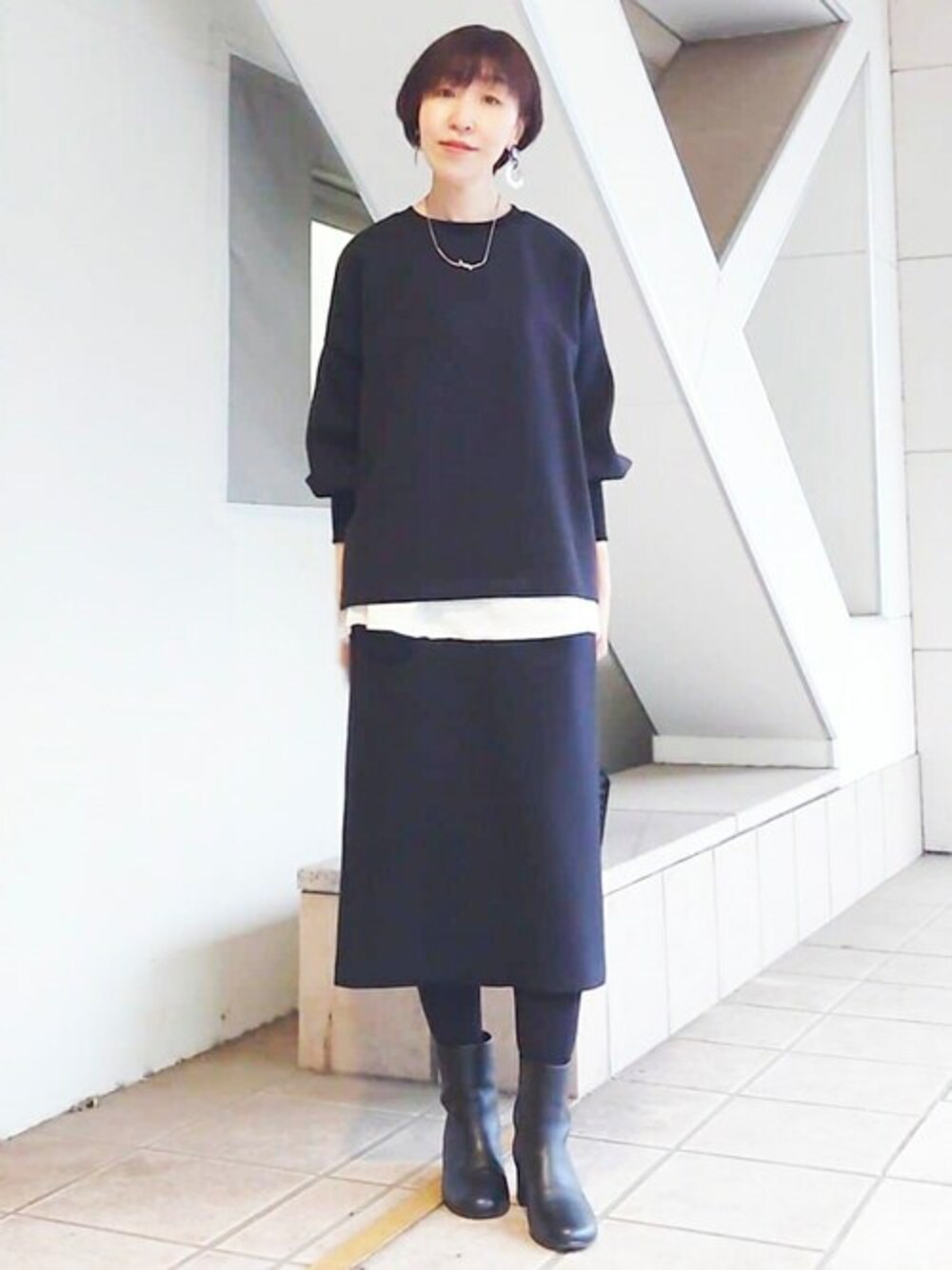 【tops】 モチモチした柔らかい質感の生地で、着心地とても軽いです。 袖のリブがしっかり留まってくれるのでたくし上げやすく、やりすぎないパフ具合が大人にちょうど良いです。 洗えますしデイリーに活躍するアイテムです。 【inner】Fサイズ着用 ヒップの隠れる長さなので、少し長さを足したいな。という時のインナーにも便利です。 ストレッチのきいたシャツ生地で、年中活用できます。 【skirt】1サイズ着用 ぴったりすぎないタイトで、足さばきも良いです。(画像9枚目参照) シワになりにくいので、お仕事用にも便利ですよ。 着丈もっと長めがお好みでしたら2サイズにしても◎ 黒はセットアップもおすすめです。 【shoes】24cm着用 プレーンなデザインで合わせやすく、後ろのゴールドがアクセントになってくれます。 足幅もわりと広め、ヒールも太くて低めなので安定感あり履きやすいです。