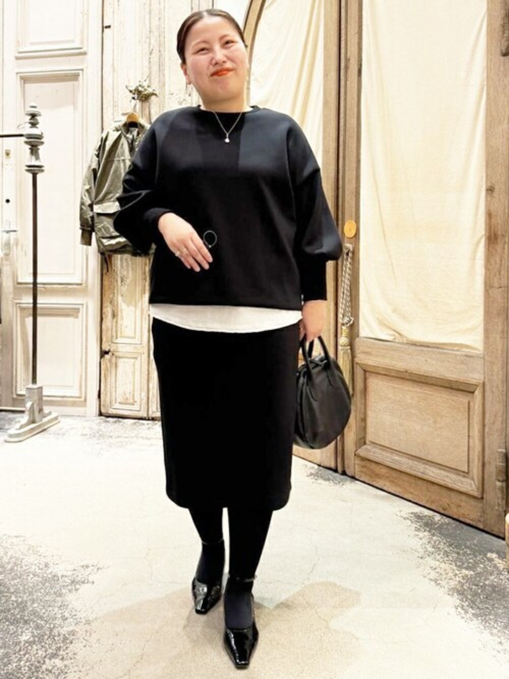 【トップス】ブラックをリアルバイしました。 もちもちしていて、ニットが苦手な方におすすめです! 気になる二の腕や腰まわり気にせず着れます。 シワになってもすぐ戻るので、旅行にも便利です。 寒い風を通しづらいので、1枚持っていると安心ですよ! 【インナー】フリーサイズ リアルバイ ストレッチが効いていて、いつものシャツタンクより着やすいです! 私は1枚では着れないので、インナーとして着たい。 お胸まわりキツくなかったですよ。 意外とお腹まわりもゆとりありました! 脇周りや腕まわりも問題ないです。 【スカート】2サイズ ウエストより上で短めに履いてます。 私はウエストタイトでした! お尻とお腹ぽっこりしちゃうので、着丈長いトップスと合わせると綺麗に履けます。 ウエストより上にして履くと私は楽でした! トップスとお揃いでセットアップで着るのがおすすめですよ♩ 【ブルゾン】 去年リアルバイをして、真冬でもニットと重ね着をして着てました。 私は、あまりカジュアルスタイルを着ないのですが、ワンピースやスカートと合わせやすかったので愛用してます。 お袖や身幅がゆったりなので着やすいですよ!