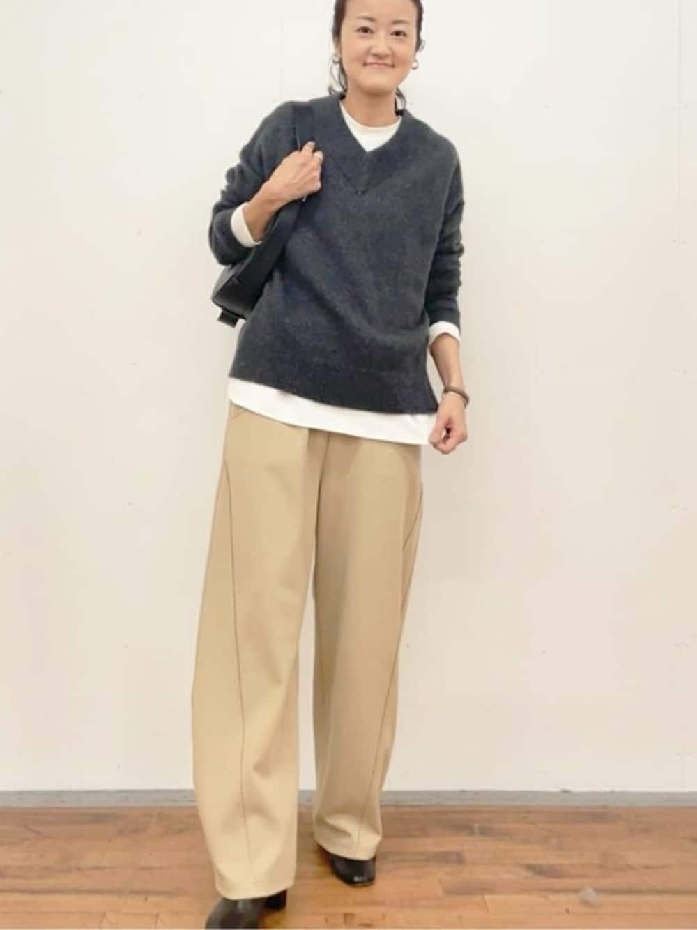 オールシーズン使えるTブラウス。 お肌が弱い方など、ニットのチクチクが気になる時… 衿の開きも少ないので、直接肌にニットが触れないから安心。 Vネックニットの開きが気になる!って時にも重ねると良いです。