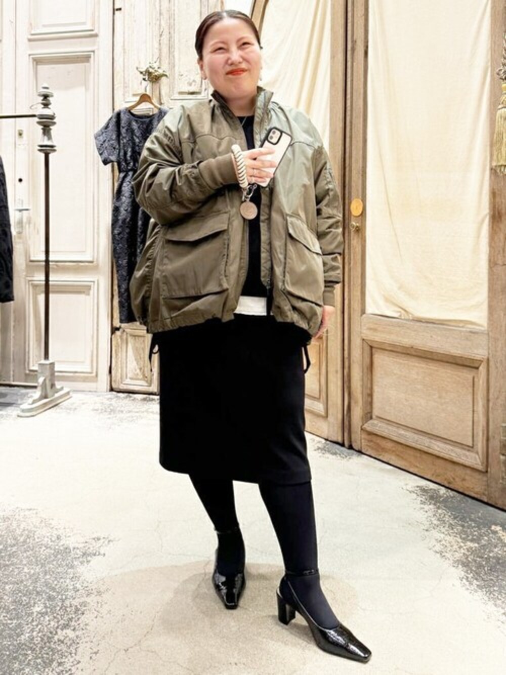 【トップス】ブラックをリアルバイしました。 もちもちしていて、ニットが苦手な方におすすめです! 気になる二の腕や腰まわり気にせず着れます。 シワになってもすぐ戻るので、旅行にも便利です。 寒い風を通しづらいので、1枚持っていると安心ですよ! 【インナー】フリーサイズ リアルバイ ストレッチが効いていて、いつものシャツタンクより着やすいです! 私は1枚では着れないので、インナーとして着たい。 お胸まわりキツくなかったですよ。 意外とお腹まわりもゆとりありました! 脇周りや腕まわりも問題ないです。 【スカート】2サイズ ウエストより上で短めに履いてます。 私はウエストタイトでした! お尻とお腹ぽっこりしちゃうので、着丈長いトップスと合わせると綺麗に履けます。 ウエストより上にして履くと私は楽でした! トップスとお揃いでセットアップで着るのがおすすめですよ♩ 【ブルゾン】 去年リアルバイをして、真冬でもニットと重ね着をして着てました。 私は、あまりカジュアルスタイルを着ないのですが、ワンピースやスカートと合わせやすかったので愛用してます。 お袖や身幅がゆったりなので着やすいですよ!