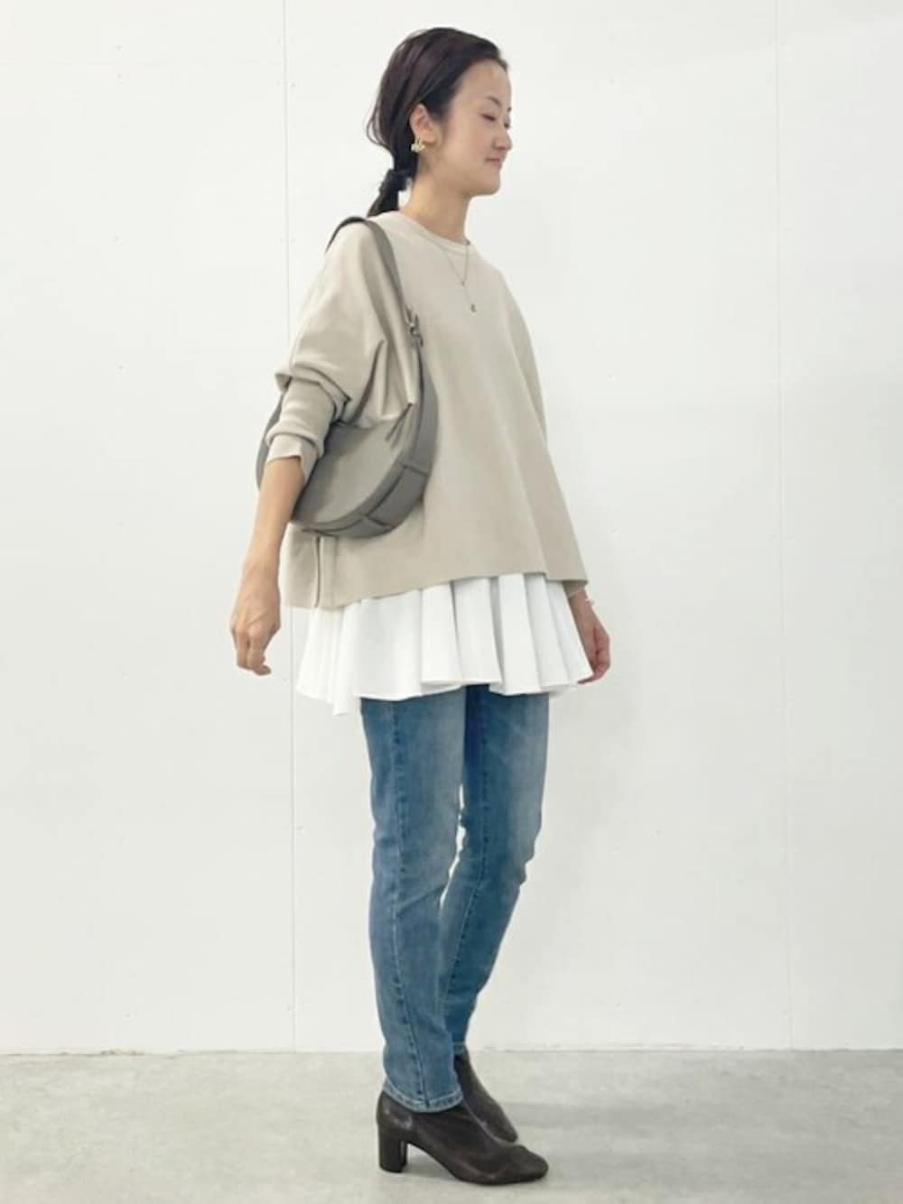 丸いカットの切り替え入りで動きが出る ヘムフレアチュニック。 普通のフレアブラウスよりもおなか周りカバーされるので1枚で着ても良いですし、 ビッグニットと合わせたレイヤードコーデも素敵です。 ブラウスは2色 ニットは3色展開なので 組み合わせでお気に入り見つけてみてください。