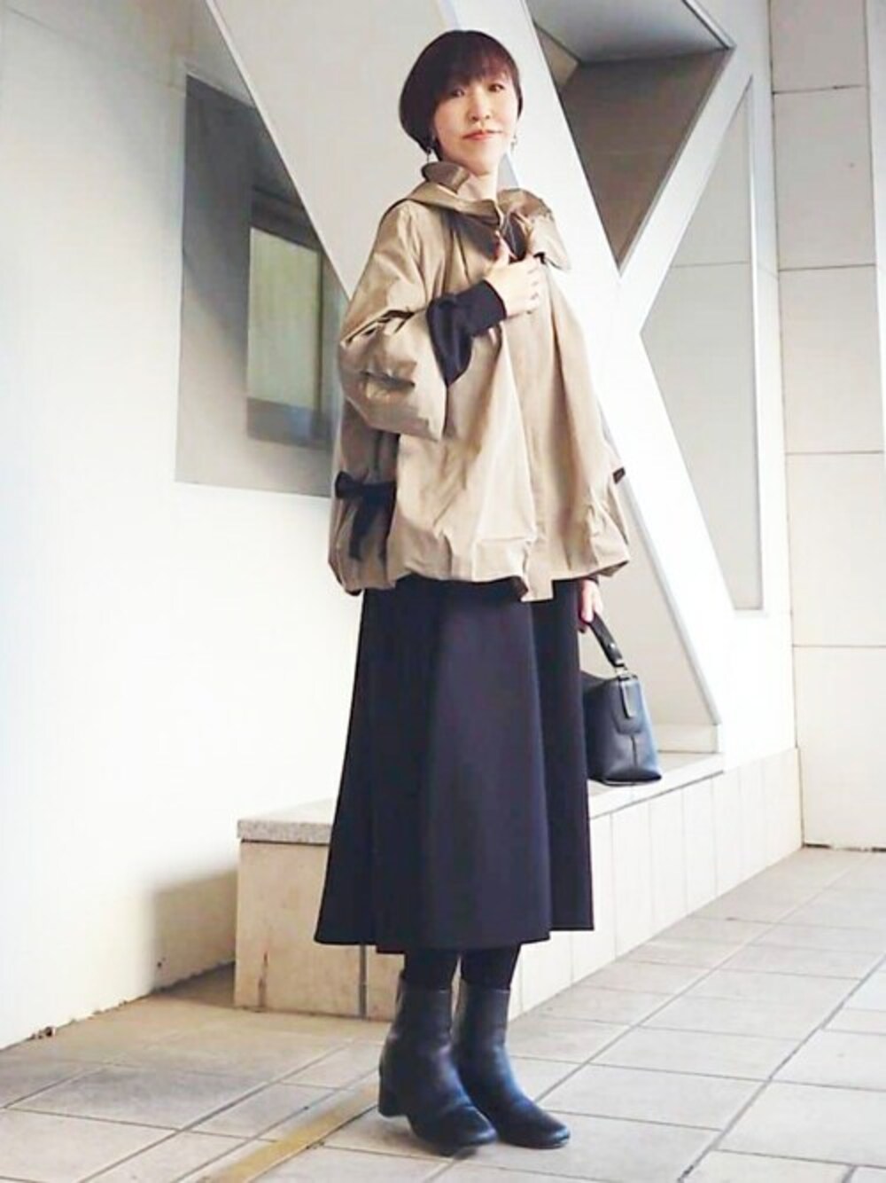 【blouson】 丸みあるデザインと、リボンが一見可愛すぎるか?と心配になるかもですが、生地に光沢があり高級感あるので若いって感じにはならないです! ※リボンはポケットにしまって見えなく着ることも可能 とてもコンパクトになるので、ご旅行時や季節の変わり目の持ち歩きにも便利ですよ。 【onepiece】1サイズ着用 全くシワにならない、程よい厚みのあるポリエステル生地で通勤や法事ごとにも使えます。 身幅はかなりゆったりしてます。 【pants】1サイズ着用 微光沢の生地感なので、キレイめなスタイリングにもピッタリです! ストンと落ち感があり、ウエストリブパンツの中でもすっきり見えるシリーズ。 ウエストは柔らかいゴムになっており、ストレスフリーな履き心地。 164cmでくるぶしくらいのすっきりした着丈になります。 【skirt】1サイズ着用 しっとりしなやかなポリエステル生地を使用しており、また見た目も微光沢なので履くだけで上品な雰囲気になります! 広がりたくない部分はプリーツを入れていないので、広がって見えない嬉しいデザインです。 ウエストは総ゴムで楽ちんです!