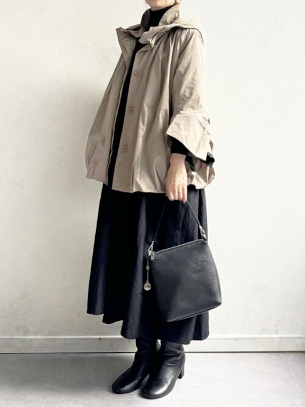 チラ見せからお問い合わせもたくさんいただいている “バルーンブルゾン” こちらはビアズリーでロングセラーで人気のアイテムなのですよ。 ふんわりバルーンシルエットですが、ボリュームはそんなに出なくて、 デザインもサイドのリボンがポイントですが、それ以外はシンプルだから 可愛いらしくなりすぎずにスッキリと着ていただけます。 リボンはブラックは同色なのでさりげなく、 モカは逆に引き立つようなデザインです。 こちらシワもきにならないし、たたむとコンパクトになって軽いから旅行とかレジャーにもピッタリですよ
