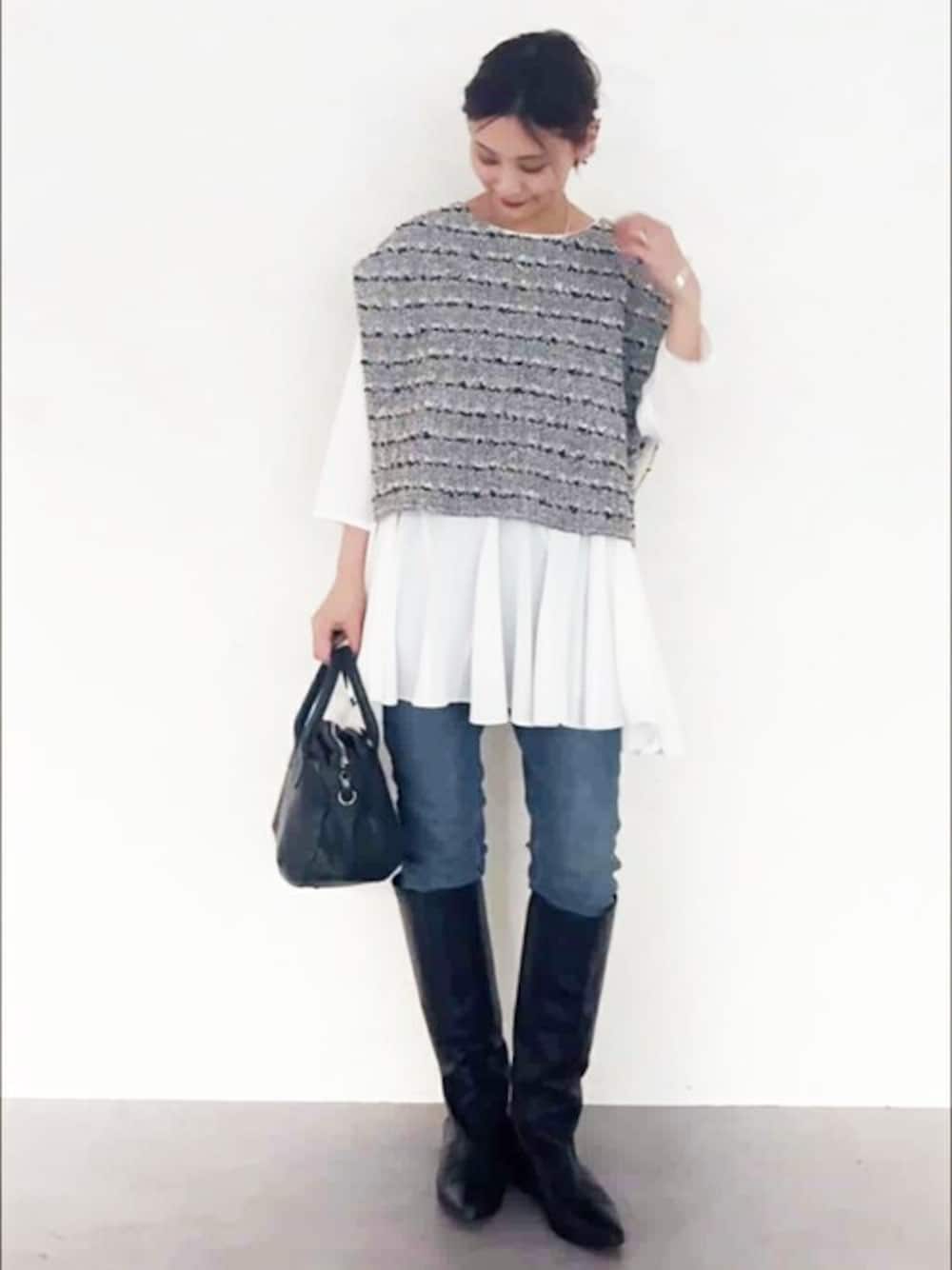 BEARDSLEY(BEARDSLEY)のニット/セーター「ツイードニットポンチョ」を使ったコーディネート