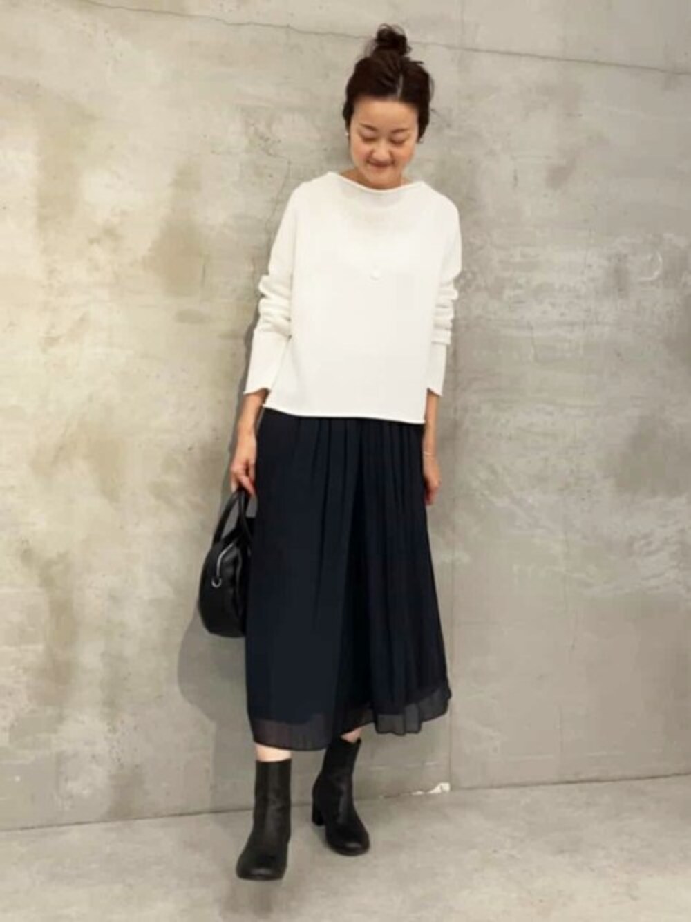 【ニット】Fサイズ しっかり肉厚さもありながら、 サラッとした着心地のドライコットンニット。 すっきり腰骨のあたりまでの着丈なので、スカートやワイドパンツとバランスが取りやすいです。 シャツをレイヤードしたり、ワンピースの上に重ねたりと楽しめます。 【パンツ】1,Fサイズ着用 軽い着心地で穿いているのを忘れてしまうくらい楽ちんなシワシフォンギャザーパンツ。 ウエストはぐるっとゴム、調節できる紐も通っています。 シワにもならないので、座ったり立ったりも安心です。 シアー感のあるブラックとカーキ、透け感が気にならないドットの3色展開。