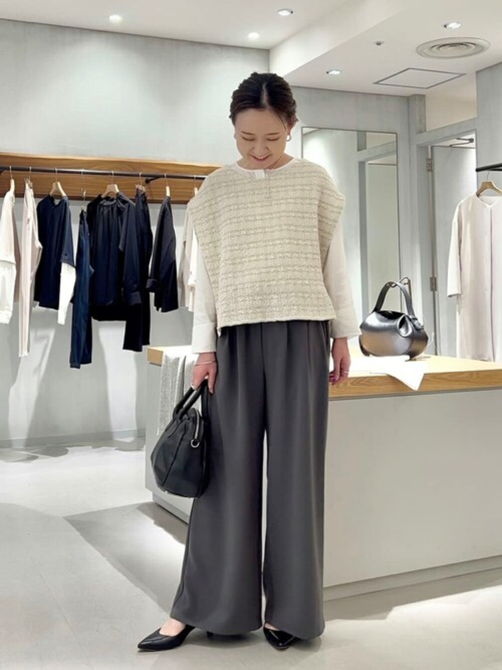 シンプルなシャツ、、 春が近づくと着用が増えてきます。 そんな時、 【ツイードニットポンチョ】 を合わせるだけで 華やかに、工夫が簡単に出来て オシャレに着こなしていただけます! レイヤードしてみたいけなぁ、、 普段あまりしない方でも 合わせやすい、薄カラーで 生地が柔らかく インナーに、寄り添ってくれるので 取り入れていただきやすいです!