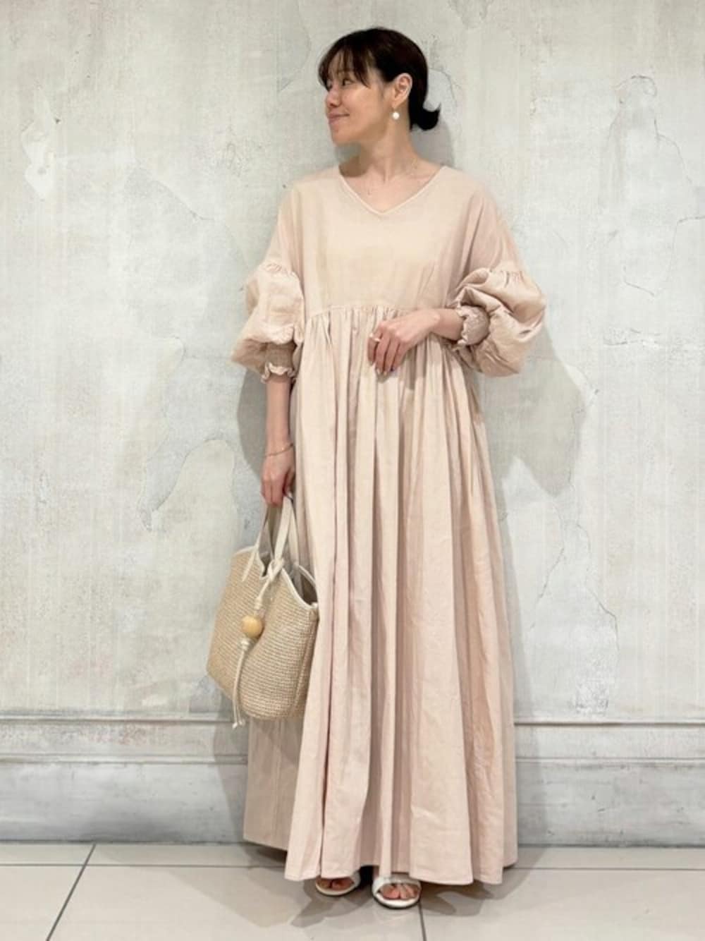 BEARDSLEY(BEARDSLEY)のワンピース「リネンギャザーワンピ」を使ったコーディネート