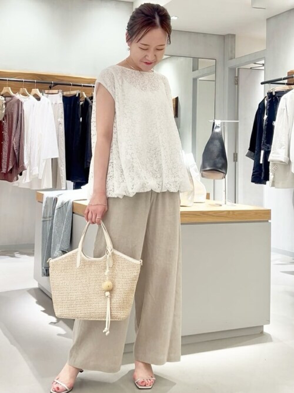 【小花刺繍バルーンブラウス】 シルエットは、バルーンになっていて 透け感のある生地に 細かい小花が上品! 裏地付きなので安心。 形崩れもしにくいです! 腕が気になるときは ビアズリーの名品!【サラッとカーデ】 と合わせて着ていただくのが おすすめです。 ▶︎着用詳細 tops ★小花刺繍バルーンブラウス サラッとカーデ bottom ウエストリブリネンパンツ 0(S)サイズ
