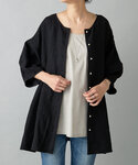 【ブラウス】Fサイズ パールボタンが華やかなリネンブラウス。 フレアシルエットで体のラインも拾わず、 166cmでもおしりしっかり隠れる長さなのでパギンス合わせて簡単おしゃれに着ていただけます。 お袖は肘が隠れる長さでほんのりパフスリーブになっているのもポイントです。 ブラックは透け感気にせずにお召しいただけます。 手洗い可 【シャツタンク】グレー/1サイズ着用 シャツ生地のタンクトップできちんと感が出ます。 伸縮性のある生地なので着心地も◎ グレーのカラーは透け感も気になりにくく、濃色とも馴染んでくれます。 手洗い可 【デニムパギンス】1サイズ着用 伸縮性が抜群で穿きやすく、沼にハマる方が多いビアズリーのデニムパギンス。 ウエストオールゴムで楽ちんですが、ウエスト内側に絞れる紐付きなので、結んでおけばしゃがんだ時も安心です。 最初はピタッとしたサイズ感ですが、穿いていくうちに脚のラインに馴染んでいきます。 手洗い可