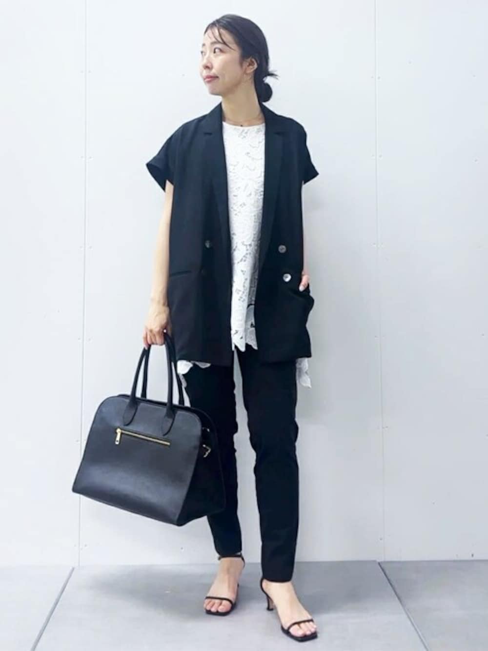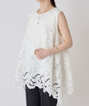 【jacket】Fサイズ 麻風の素材を使用した 涼し気なメッシュジャケット 程よく二の腕が隠れる袖丈なのも嬉しいポイント 1枚羽織るだけで様になって見えるので 夏のマストアイテムになりそう。 お仕事スタイルにもおすすめですが、 カジュアルにも使えるアイテムです。 【blouse】Fサイズ 総レースが華やかなブラウス。 両サイドが長めのデザインで 動く度に揺れ感が綺麗なのもポイント。 長さがあるのでさりげなく体型カバーも叶います。 一枚で着ても、ジャケットやカーディガンと重ねても素敵です。