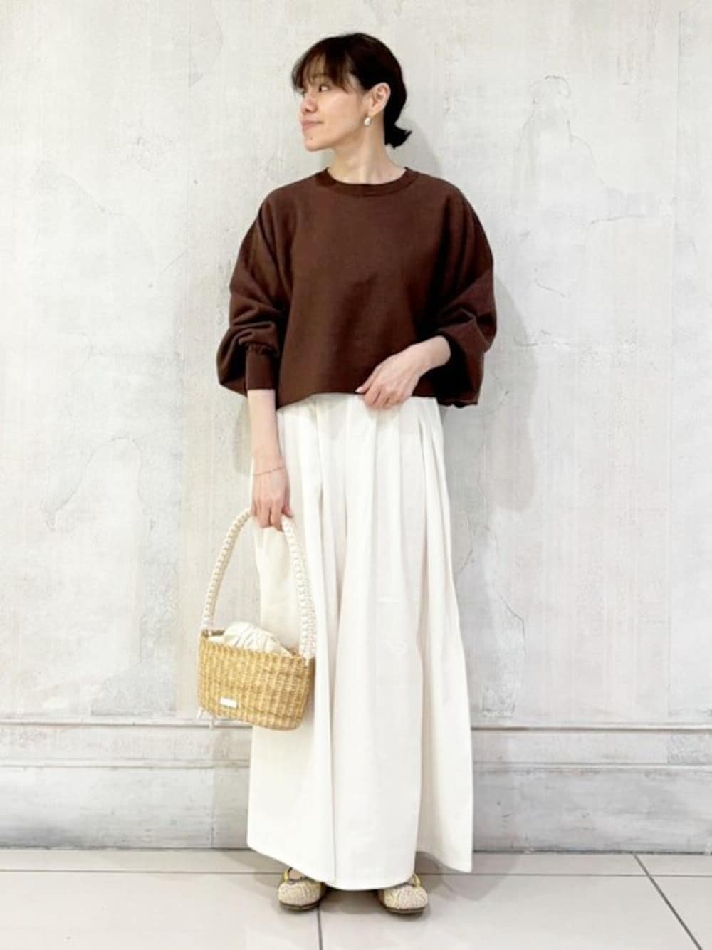 【knit】着用サイズ:F ゆったりとしたドルマンスリーブの ショートニットプルオーバー クロップド丈なので 低身長な方でもインしなくても バランス良く着れる丈◎ ドルマンスリブなのでたくし上げて 袖のボリューム感を楽しめます ご自宅で手洗い可能なのも 嬉しいポイントです 【pants】着用サイズ:F ウエストにタックを寄せた ボリューム感のあるバギーパンツ 股上が深くスカート見えするデザイン ウエストの後ろはゴムと紐になっており ゆったりとリラックスして着れます 柔らかな風合いの麻で仕立てで 清涼感のある着心地です