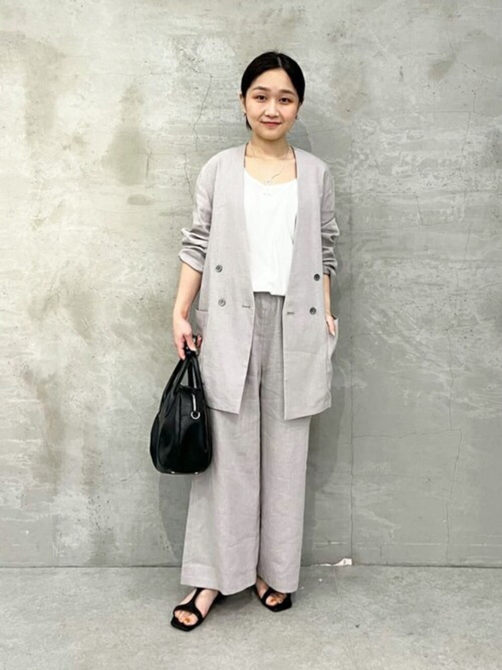 【ジャケット】 さらりと羽織るだけでこなれ感を演出するリネンジャケット。 肌触りが良く通気性にも優れているため、シャツ感覚で着られます。 デイリーユースからオフィススタイルまで幅広く活躍してくれるアイテムです。 149cmで太もも真ん中くらいの着丈。袖丈は長めなので捲って着るのがおすすめ。 【インナー】着用サイズ:0 ストレッチの効いたシャツ素材のタンクトップで、きちんと感があり、見せてオシャレなインナー。 カーディガンやベスト、ジャケットにはもちろん、透け感があるサマーニットとのレイヤードもおすすめ。 【パンツ】着用サイズ:0 定番ウエストリブパンツのリネン素材。 リネンですがストレッチが効いていて、やわらかいので着心地も肌触りも良いです。 Tシャツ合わせなどシンプルコーデも涼しくかつオシャレ見えするので、リネンボトムは一本抑えておきたいアイテムです!