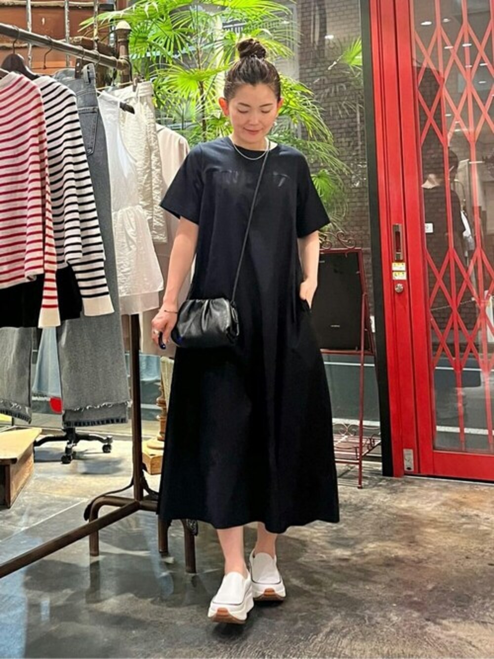 【one-piece】着用サイズ F size フレアシルエットの一枚でさまになるワンピース 透け感無く一枚でサラッと着やすいデザイン お袖周りはカットソーなのでストレッチが効いていて動きやすいワンピースです。 ポケットがあるのも嬉しいポイント お家で気兼ねなく洗えるので、これからの時期に嬉しいアイテムです。
