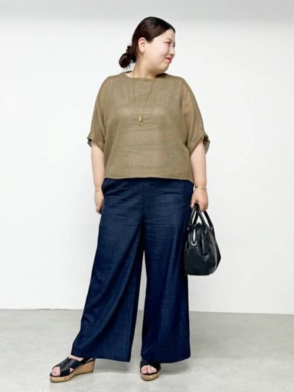 【トップス】 タンクトップ付きなので1枚でもかわいい! 別々にも着れるから、インナーの色をかえたり、 ワンピを重ね着してもかわいいです。 二の腕はドルマンスリーブで、肘まで隠れるのが嬉しい! インナーは私が着るとぴったりしてました。 ニットはゆったりしてます。 【パンツ】2サイズ着用 カジュアルにもキレイめにも着こなせる万能パンツです。 これからの季節ぴったり! 体型もカバーしてくれる優れもの!!! ウエストがリブとゴムなので楽ちん! 生地が柔らかく足のライン気にせず履けるのが好き。 【サンダル】 普段24センチ〜24,5センチを履いてます。 Lサイズ愛用中です。 甲高、幅広ですが、クロス部分が柔らかく キツくないので、とても履きやすいです。 適度なウェッジソールなのでスタイルアップしますよ! ウェッジソールが安定感あるので、ヒールが苦手な方もチャレンジしやすいです。
