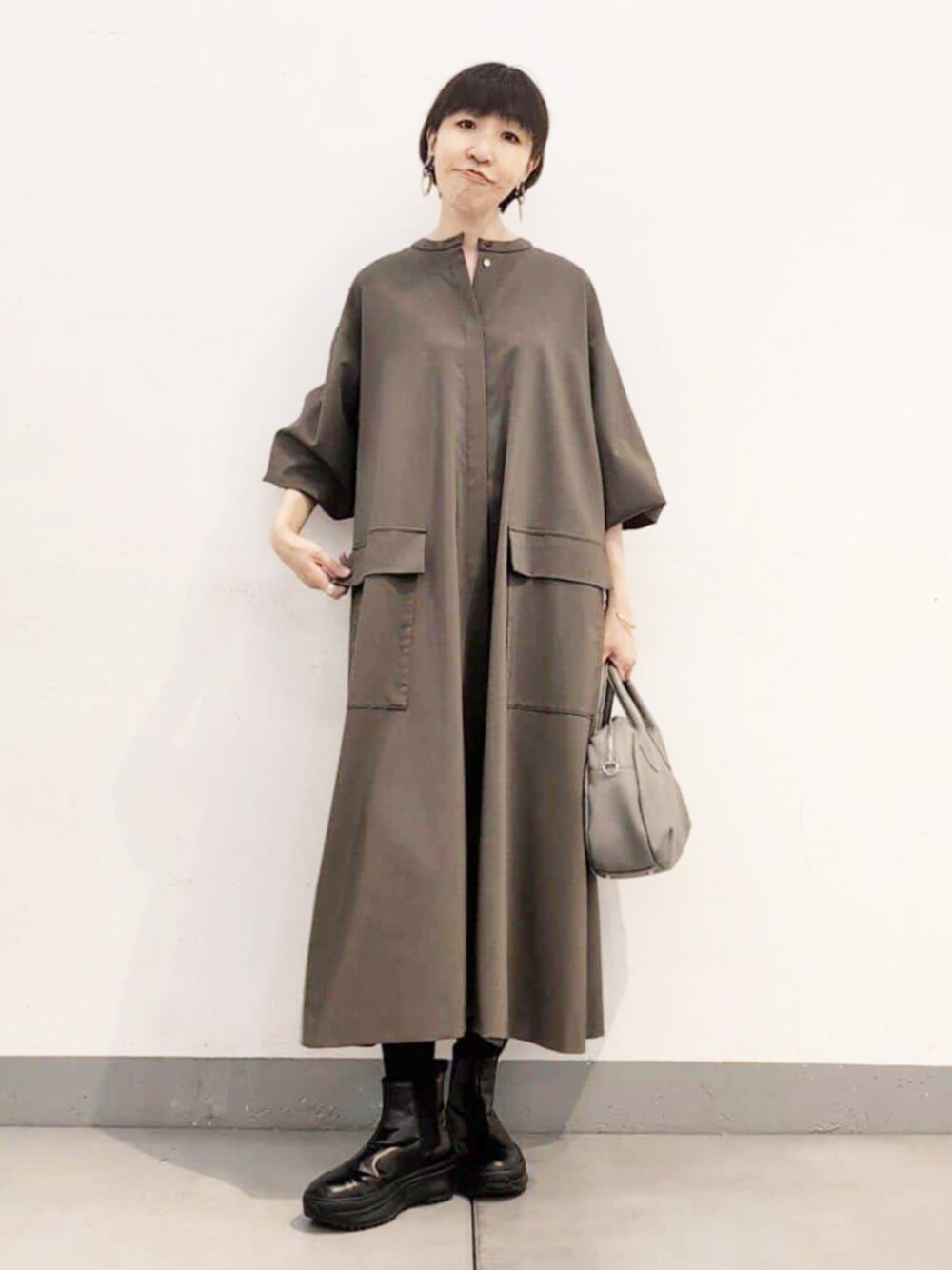 【ワンピース】 身幅も袖幅もゆったりしてます。ギャザーたっぷりのデザインが1枚着るだけでオシャレに見えます。 袖をたくし上げるとふんわり袖に! 前を開けて羽織りで着ることもできますよ。 【バッグ】 小さすぎず、大きすぎず、必要最低限のものがしっかり入る見た目以上の容量の多さが人気の理由です! キズの目立たない質感のレザー、そしてどんな場面でも使えるシンプルなデザインなので、1つあれば大活躍すること間違いなしですよ。