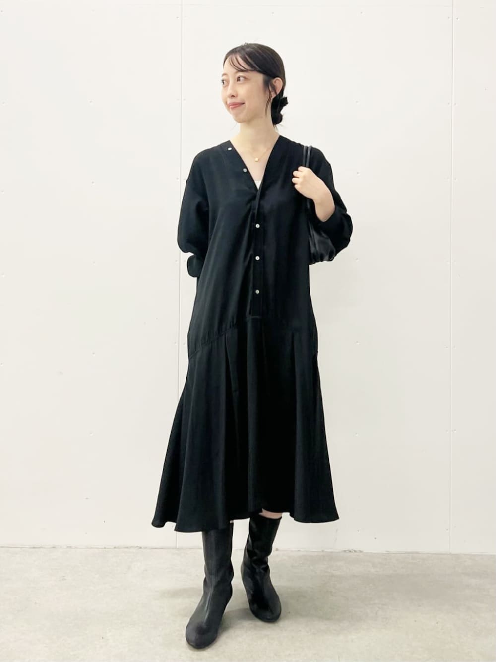 【ワンピース】着用サイズ:0 ほんのり光沢のある生地と落ち感が綺麗見えするワンピース。 切り替え位置が低めなので、広がりすぎず裾にかけて 綺麗なフレア感が出ます。 裾がアーチ型で前が短くなっているのでスッキリ見える シルエット◎ 154cmの私は0サイズ着用。 長めがお好きな方はFサイズもおすすめです。