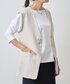 【ジレ】Fサイズ ヴィンテージパーツを模って作られたシルバーのパーツがさりげなく目を惹く一枚! わたしは肩幅があって、大抵ジレやベストは似合わず、肩がさらに広がって見えるので断念することが多いのですが、 シャープに開いた襟元や、華やかなパーツがアクセントになり、とてもすっきり見せてくれます。 【カットソー】Fサイズ とっても薄くてなんだかひんやり感じる、でもコットン100%という、毎年大人気の強撚シリーズ。 天然素材のソフトな肌触りはやみつきになります! 今年のはやや身幅もゆったりめで、インナーとしてだけでなく、一枚着もしやすいシルエット。 【パンツ】Fサイズ 程よい厚みで3シーズンお召しいただけます。 ウエストは総ゴムで楽ちん。ピケ織りという、縦に畝が入っている生地なので、上品な印象がありますし、通気性も良いので肌触りさらさらです。 【バッグ】 コンパクトながらマチもあるので、身の回りの荷物は入ります。 短めのハンドルもついてるので、コーデによって長め、短めをチェンジしてきれいめにもカジュアルにも印象を変えられます。