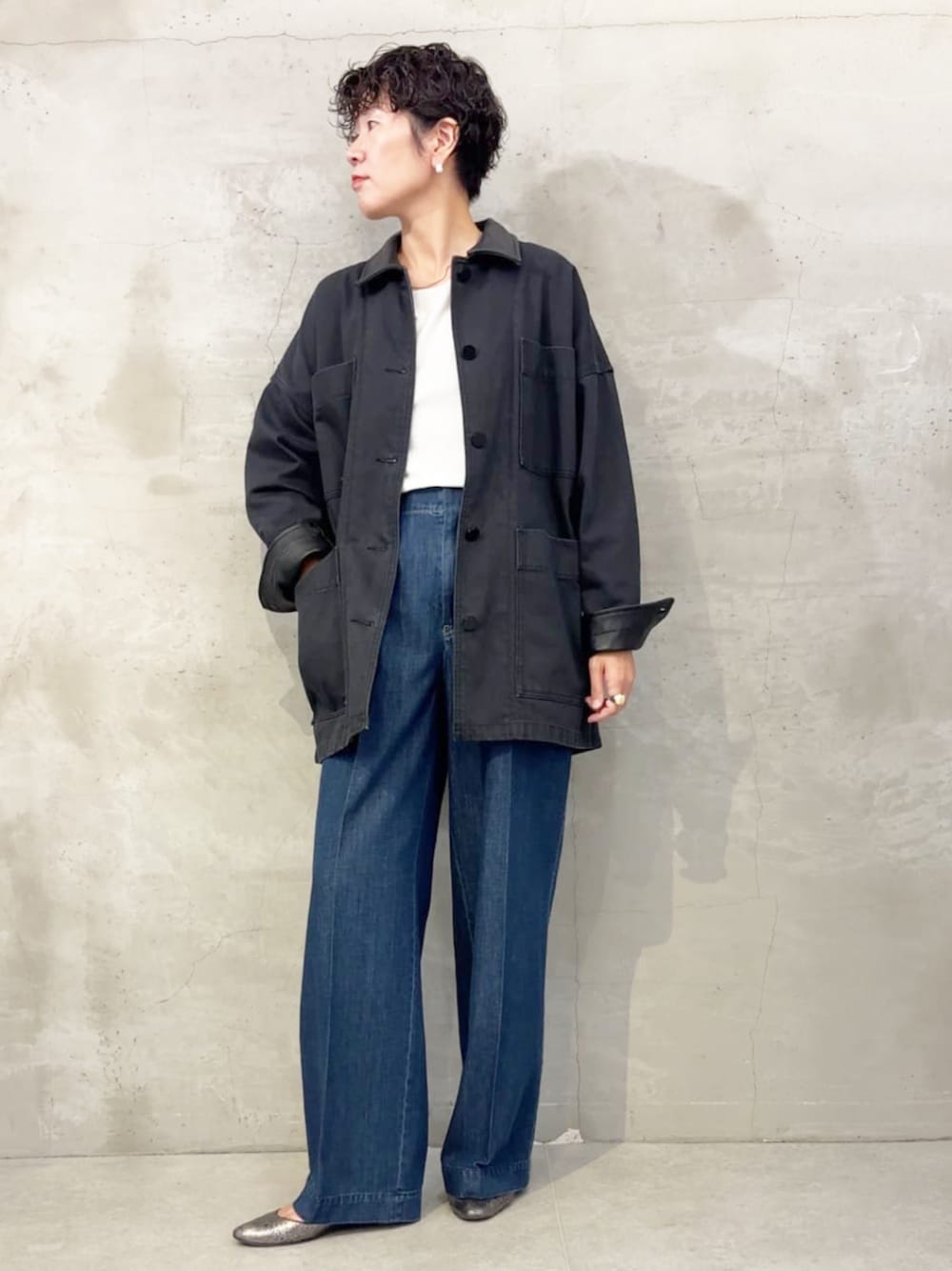 【《15 quinze》レザーコンビワークジャケット】 ユーズド感のある厚手のコットン素材のワークジャケットに滑らかなレザーをあしらって 雰囲気たっぷりです。 固さはあまり感じませんが、着馴染むとより柔らかく着やすくなる予感がします。 【デニムスラックスパンツ】 センタープレスのストレートでキレイなシルエットのパンツ 柔らかくてストレートというところはドロストデニムと似てますが よりキレイ目な印象で全く異なる雰囲気のデニムです!