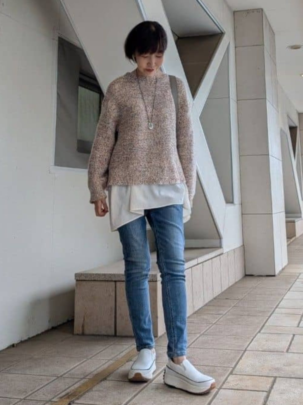 【ニット】 軽い着心地で、質感も柔らかいです。 短すぎず長すぎずの着丈なので色々なボトムスと合わせやすいです。 ヒップの隠れるこのインナーを足せば細身のパンツにも合わせられますよ! 【ブラウス】Fサイズ着用 薄手で柔らかい質感なので、長い時期使えるアイテムです。 インナーにした時に腰周りからヒップのカバーにもなりますし、フレアーシルエットなので動きが出て素敵ですよ!シワになりにくいのも◎ 低身長の方や、もう少し短めがお好みでしたら0サイズがおすすめです。 【パンツ】1サイズ着用 生地自体の伸縮性がしっかりあり、しかも柔らかいのでストレスフリーな履き心地です。 ピッタリしているのですが肉感を拾わない程よい厚みで安心感があります。 トップス長めのときやワンピースの下に履く用に1本持っておくと、重宝すると思います! 【バッグ】 柔らかくて軽いレザーなので、容量たっぷりですが重くならずに使いやすいです。普段荷物多めの方におすすめです。 折り畳み傘、水筒、上着、iPad も十分入るサイズ感です。