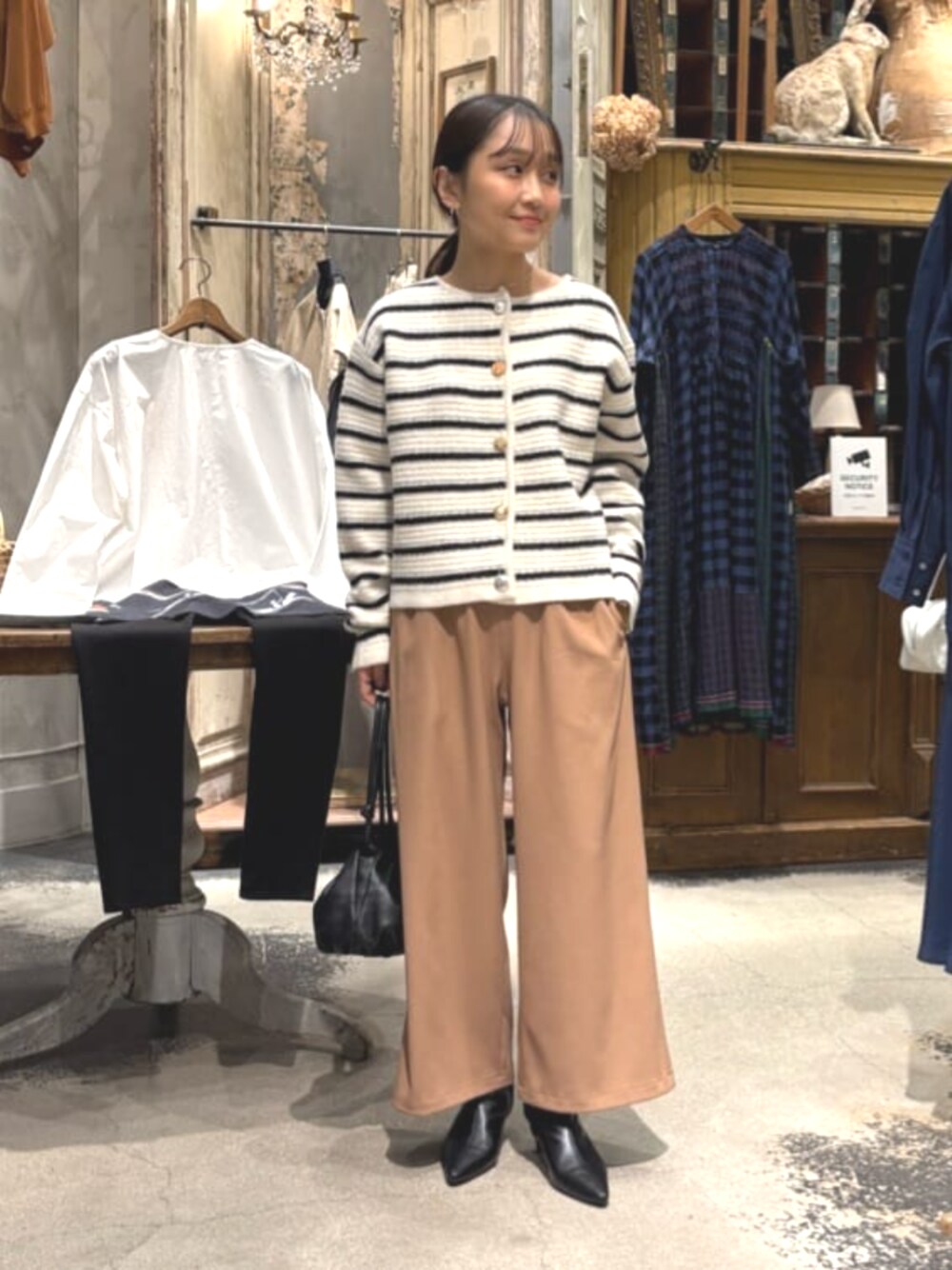 BEARDSLEY(BEARDSLEY)のカーディガン/ボレロ「《15 quinze》ボーダー前後ニット」を使ったコーディネート