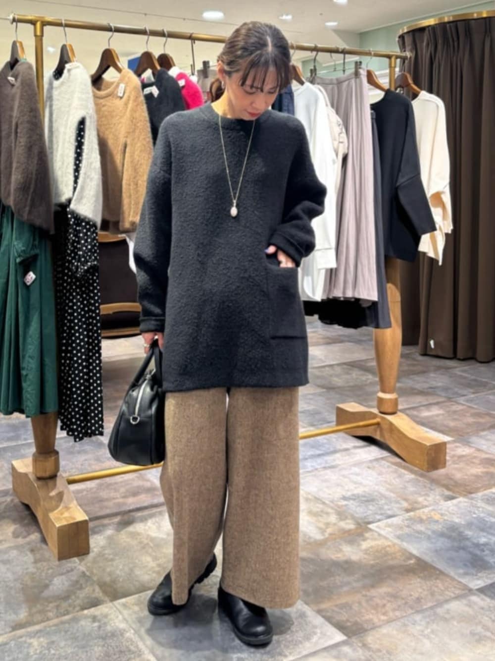 ニット ふんわり肌触りで生地のチクチクが気にならなず気持ち良く着ていただけます。 腰下まで着丈がありヒップライン隠れる長さでスリムなボトムやワイドパンツにもコーディネートが出来ます。