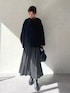 綺麗めにも着られるウールコートは1サイズを着用。 158cmで少し袖丈は長めなので、気になる場合は少しだけ折っても◎ 今回はドットワンピースで合わせました。 裾が広がらずスッキリするので、ワンピーススタイルとも相性バッチリです。 アウターは裏地付きで滑りが良く、ゆったりなので、 真冬は厚手のニットを入れてももたつかず着られます。 前から見るとシンプルですが、後ろに丸みが出るデザインなので、シックなカラーでも女性らしい柔らかな印象になります。