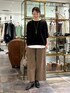 【ニット】着用サイズ:F ゆったりとしたシルエットのニット。 ヤクとウールの混紡でやわらかな肌触りなので、着心地がとても良いです◎ 丸みを帯びた後ろ裾が他にないデザインです。 Tブラウスなどのインナーと重ね着も楽しめますよ。 154cmで前部分は腰骨のくらいの丈感、後ろはヒップにかかるくらいの丈感です。 【ブラウス】着用サイズ:0 1枚でも、重ね着でも、ジャケットやベストのインナーとしても 活躍する万能ブラウス。 白でも透けにくいのでインナーを気にせず着られます◎ 154cmで0サイズが丁度良い丈感◎ 【パンツ】着用サイズ:0サイズ ウエストリブシリーズに、秋冬にぴったりの温かみのあるウール素材が登場。 ネップが混ざったツイード生地を使用しているので、1枚でオシャレみえが叶います。 裏地付きなので温かいし、チクチク感も控えめです。 154cmで0サイズを着用し、くるぶしにかかる丈感。