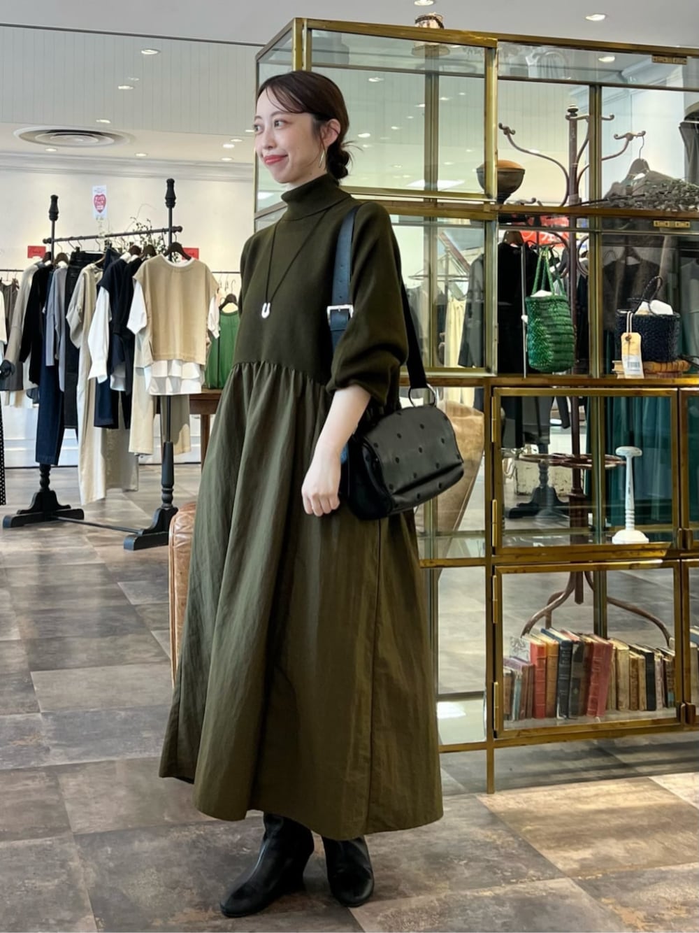 【ワンピース】着用サイズ:0サイズ 大人気のワンピース。 高めの位置で切り替えギャザーが入っているので 1枚着るだけで簡単にスタイルアップします。 154cmで0サイズを着用して、 フラットシューズでも問題ない位のスッキリ着られる丈感。
