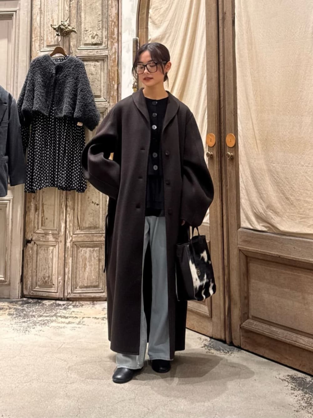 【トップス】 ◻︎チュチュタンク レイヤードスタイルに持っておきたいタンクトップ。 肩周りは伸縮性のある生地で着心地も楽ちんです。 普段のコーディネートに合わせるだけで華やかさがプラスされます。 ◻︎ショートカーデ 大きめのボタンがシンプルながらも、華やかさを加えてくれます。 ショート丈なので、下にチュチュタンクを入れてレイヤードスタイルもオススメです。 【ボトムス】0サイズ 柔らかいデニム素材で着心地が良いデニムパンツ。 ウエストに紐が付いているので、ウエストの調整が出来るのも嬉しいポイント。 ウエストのドロストリボンは内側についているので、中にいれたり外に出してワンポイントにしたりして着ていただけます。 【アウター】 袖がコクーンシルエットになっているのが可愛いコート。 ウール100%のリバーコートで暖かく、裏地がついていないのでとても軽いです。 リボンが付いているので、絞って前で結んでシルエットも変えて着られます。