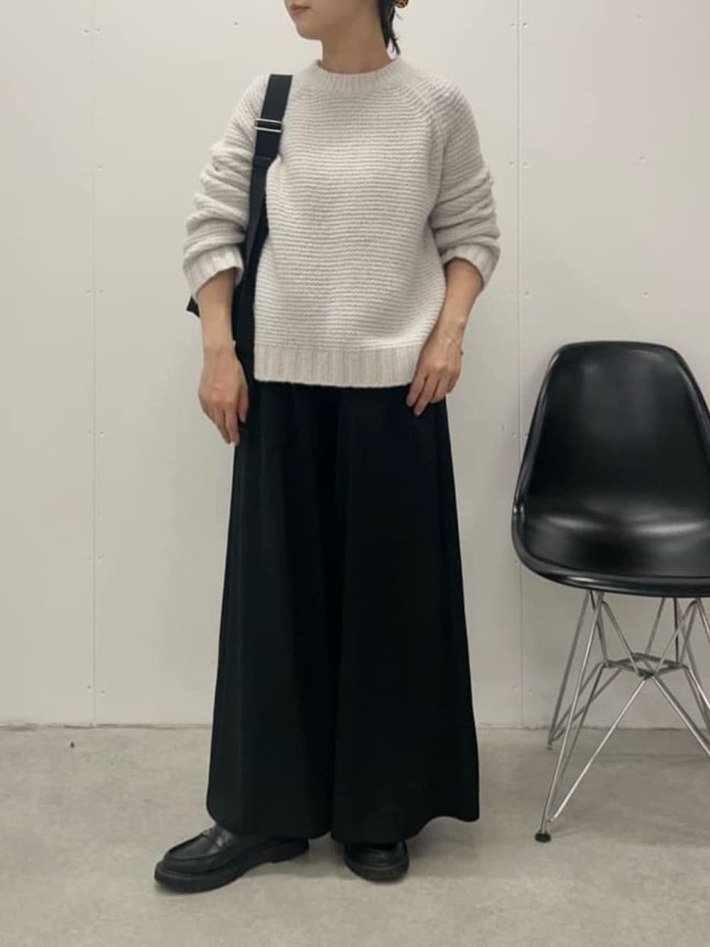ジャージ素材で履き心地の軽い ワイドパンツをメインにモノトーンコーデ