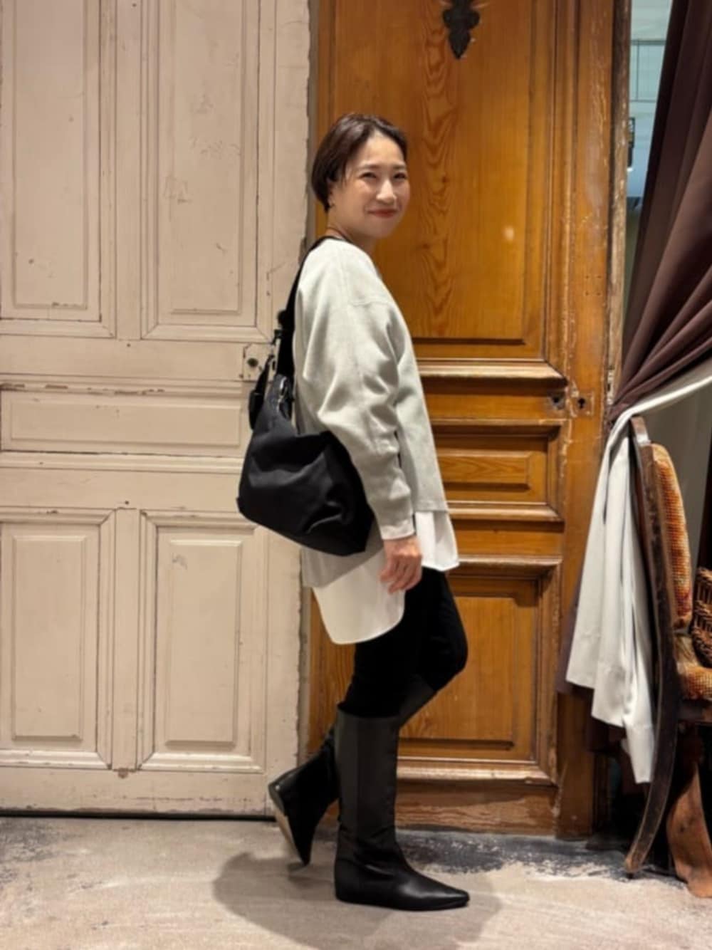 【トップス】 ビアズリー で人気のサイドジップシリーズに、 ニット素材が登場✨ スウェットタイプとは違って、 ニット素材なのでボリュームが出ないため、 すっきり、着痩せてみえて嬉しかった😊 スウェットとかトレーナーってボリュームが出やすいので、ボトムにワイドパンツを合わせると、大きく見えがちですが、 これなら丈感も長すぎないので、スカートと合わせてもバランスがとりやすかった印象。 伸縮性のある素材なので、着心地も良かったですよ! 首まわりもコンパクトなので、インナー見えちゃう問題も心配なしです。 そのままでも、大人可愛いニットですが、 Tブラウスを重ね着しました。 カジュアルな中にも、 大人キレイめなコーデに仕上げました。