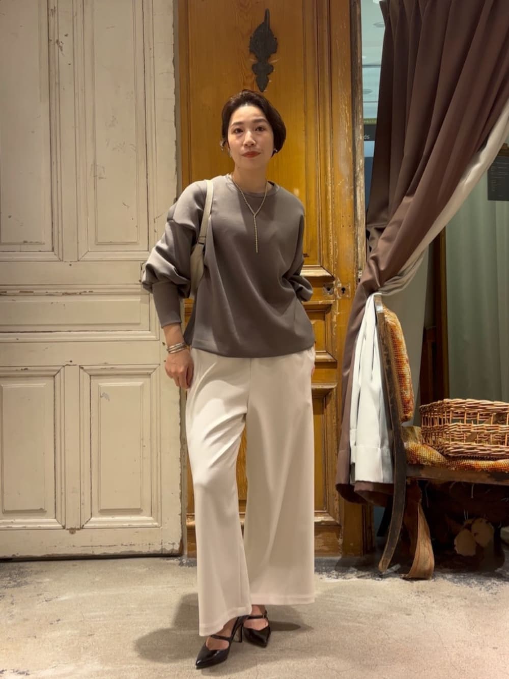 【トップス】 今年も大人気のダンボールパフトレーナー。 名前の通り、 ダンボールのように、 空気を含んだ柔らかい生地で作られているので、とっても軽くて滑らかな着心地。 一見カジュアル?? と思われがちなのですが、 綿素材のトレーナーとはちがって、 微光沢を感じられるのでキレイめカジュアルになります。 【パンツ】は、 裏起毛のウエストリブパンツ。 もたつかない薄さなのにあたたかい。 トップスの色が、 モカのようなアースカラーには、 白のようなクリアな色を合わせると、 メリハリがうまれて、オシャレなコーデになります🥰 シックな方がお好みであれば、黒もクールで素敵ですよ!