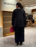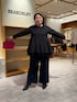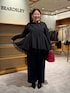 【ブルゾン】 二の腕きついかな?と思ったのですが、着用してみたら腕キツくなかったです。 胸下からギャザーがあり、山型の切り替えなので ボリュームが出過ぎず着れました。 中側のチュチュが同系色なので甘くなりすぎなりのがうれしい💓 実用性のあるポケット付きです! お袖のボタンは隠ボタンで小さめなので カジュアルないので綺麗目派さんにもおすすめです。 腰まわりしっかりカバーしてくれます。 【ボトム】 2サイズ着用 ウエストがリブになっていて、ゴムの所を折り返して着るとお靴やトップスの着丈によって変えれるのが魅力です。 お腹とお尻がとにかく楽なんです! 秘密は、股上が長めなので私のようにポッコリお腹やヒップが出ている方におすすめなんです♩ リピ買いしてしまうほど楽ちんですよ!