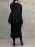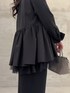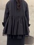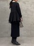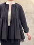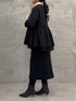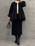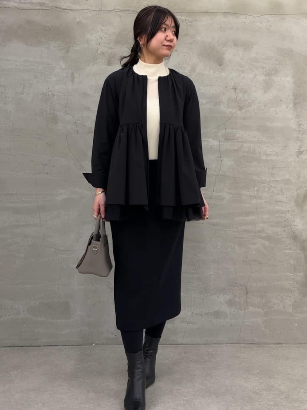 【アウター】 裾のチュールレースがポイントのノーカラーブルゾン 袖は細身ですが、チュールのボリューム感とのバランスがよく見えます。どこから見ても華やかな印象のアイテムです。 【スカート】着用サイズ1 伸縮性のあるダンボール素材で、後ろにはスリット入りのため、タイトなシルエットでも動きやすい◎ゆったりしたアウターでもバランス良く見えます!164cmでふくらはぎくらいの丈感です。