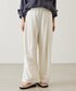 【トップス】 バンドカラーシャツにニットジレを組み合わせた着回し力抜群のセットアイテム。 シャツのサイドには深めのスリットを施し、袖口はきゅっとたくし上げやすいゴム仕様に。 着用したときに自然な立体感が生まれるよう、細部までこだわった一枚です。 ホワイトの無地、ブラックのドット、ブルーのストライプの3種類を展開。 セットのジレはニット素材で、短めの着丈がシャツとのバランスを取りやすいデザイン。 アームホールを広めにとることで、重ねても窮屈感のない着心地に仕上げています。 背中にはコンシールファスナーを配し、さりげないアクセントもプラス。 セットでの着用はもちろん、それぞれ単品使いもでき、スタイリングの幅が広がる優秀アイテムです。 【パンツ】 しなやかな伸びと落ち感が魅力の、ストレッチ素材を使用したインシームパンツ。 ウエストは総ゴム仕様で、ストレスフリーな穿き心地ながら、すっきりとした印象に仕上げました。 内側に2本入れたインシーム(縦の切り替えライン)が、脚のラインを自然に引き締め、ワイドシルエットでも美脚効果を演出。 動きやすさときれい見えを両立し、デイリーからきれいめスタイルまで幅広く活躍します。 シンプルなカラー展開でトップスを選ばず、リラックス感がありながらも大人の品を感じさせる一本です。