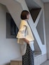 【トップス】 インナーセットだと迷わず着られて安心ですね。 ジレ↓ ウール×コットンの素材で、ふわっと暖か。 まだ肌寒い春にぴったりなアイテムです。着丈短めなのでワンピースやスカートともバランス良く着られます。 シャツ↓ 袖パフで着られるデザインなので真面目になりすぎなくて良いなと思いました。バンドカラーになっており、シャツカラー苦手な方にも着やすいです。 【パンツ】2サイズ着用 ※ウエスト一折した状態です 単調なドットじゃないところが、シンプルコーデでもオシャレ見えになるポイントです! サラッとしていて柔らかい生地感。真冬以外はずっと穿けます。 164cmで2サイズは床につくほどの長さですがハイウエストで穿くか一折するとちょうど良い着丈になります。 シワにならないのでご旅行用にもピッタリです! 【バッグ】 小さく見えるのに、マチがしっかりあって容量あります! 中の仕切りやポケット多めなところも実用性あり。 かっちり見えがちなレザートートも、このサイズ感ならデイリーに持ちたくなりますよ。 ミニミラー付きなのも可愛い!