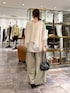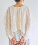 【トップス】着用サイズ:F スクエアモチーフをパッチワークのように配した、ポンチョライクなレイヤードアイテム。 バックスタイルにはボタンをあしらい、開閉や着こなしのアレンジも可能◎ シンプルなコーディネートに重ねるだけでこなれ感のあるスタイリングになります。 【パンツ】着用サイズ:0 薄手でシボ感のあるワイドパンツ。 ワイドシルエットですが、落ち感のあるデザインなので抜け感のある印象になります。 ウエストはゴム仕様で、紐付きなのでサイズ調整が可能。 ストレスフリーな穿き心地です◎ 154cmで0サイズを着用し、足の甲に少しかかる丈感。 フラットシューズでも問題なく穿けました。