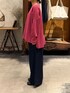 【トップス】 サラッとシリーズより長袖が登場。 シワになりにくく、型崩れ、毛玉になりにくい素材でさらっと肌離れが良いです。 長すぎない着丈で、サイドと後ろにスリット入りなので低身長でもバランスがとりやすく、ボトムを選ばず合わせられます。 春秋冬の3シーズン使えます。 【パンツ】着用サイズ:0 ビアズリーの定番ロングセラーアイテム。 ウエストが太めのリブとゴムで締め付けません。シワも気になりにくいです。 落ち感がありほんのり光沢感もあるのでカジュアルすぎずお召しいただけます。 149cmでくるぶし下くらいの着丈。