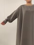 【one-piece】着用サイズ F size ダンボール素材のツヤやかなワンピース 膝丈でさらっと一枚で着やすいデザイン ふわふわとしていて着心地良く チクチクが苦手な方にもおすすめ シーズン長く着やすいのも嬉しいポイントです。