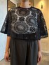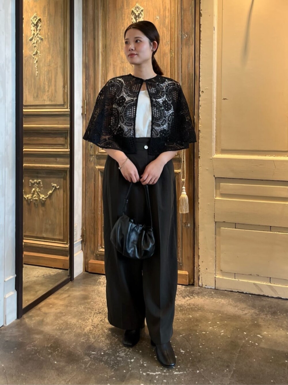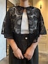 【tops】 大胆で存在感たっぷりなレースポンチョ。 ケープのようにさっと重ねるだけでいつものスタイリングをグッと華やかにアップデートしてくれる◎ ノースリーブのトップスやワンピースなどに重ねると気になる二の腕も隠してくれる。