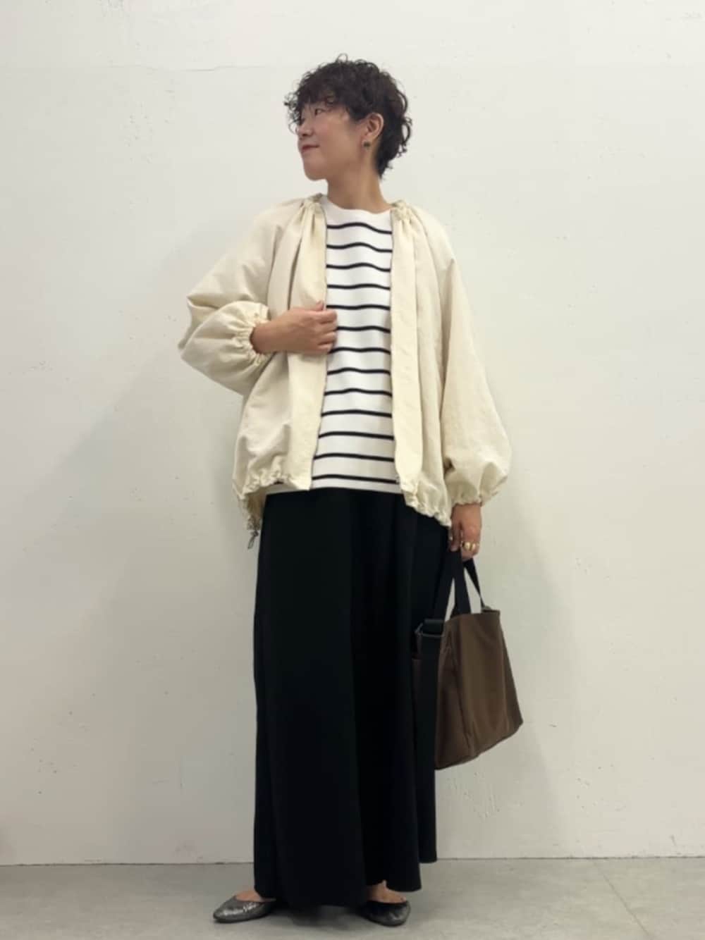BEARDSLEY(BEARDSLEY)のノーカラージャケット「ギャザーブルゾン」を使ったコーディネート