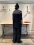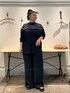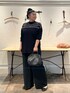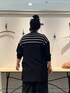 【tops】 着用サイズ : F ニットとブラウス素材を組み合わせた、ボーダーニットブラウス。 腰まわりをカバーしてくれる着丈で安心感があります。
