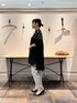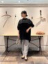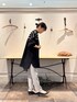 【ボーダーニットブラウス】 着用サイズ:F ニットとブラウス素材を組み合わせた ボーダーニットブラウス 衿元から胸にかけては サラサラとしたニット素材を使用し 胸下からの切替は 軽やかなブラウス生地を使用 シンプルながらも一枚で着映えします 【ダブルクロスウエストリブスリムパンツ】 着用サイズ:0 ウエストリブシリーズには珍しい テーパードパンツ 二重織りのしっかりとした生地なのに とろみ感があり 脚のラインを拾いにくいデザイン 滑らかな肌触りでシワになりにくく シーズンレスで履けます