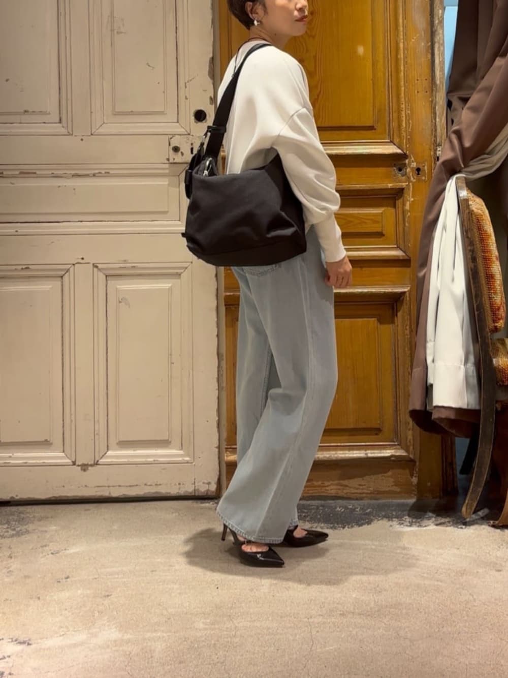 【トップス】 今年も大人気のダンボールパフトレーナー。 名前の通り、 ダンボールのように、 空気を含んだ柔らかい生地で作られているので、とっても軽くて滑らかな着心地。 一見カジュアル?? と思われがちなのですが、 綿素材のトレーナーとはちがって、 微光沢を感じられるのでキレイめカジュアルになります。 トップスの色が白の時に デニムを合わせるだけだと カジュアルになりますが、 小物使いで大人カジュアルコーデになります🥰