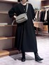 【ワンピース】1サイズ着用 伸縮性のある素材で一枚で透けずに着られるロングワンピ。袖口があげやすいです。 シンプルなので、ネックレスをつけてきれいめにも、スニーカー合わせてカジュアルにもと、合わせる小物で印象が変えられます。 タックで背中がすっきり見えますよ。 【コート】1サイズ着用 ドルマンスリーブだから、中にゆったり厚手のニットも着込めます。 リバー仕立てで落ち感が良く、前後差があってヒップがしっかり防寒できます。 襟元のボタンがアクセントになり、ネックを立ててもかわいいですし、襟を開けても様になるデザインです。 【ネックレス】 がま口の形が遊び心のあるロングネックレス。暗くなりがちな冬の装いのアクセントになります。 【ブーツ】 幅広めでつま先が尖ってないので、楽に履けるショートブーツ。かかとのジップで脱ぎ履きも 楽ちんです。 クッションがきいていて、履きやすかったのでリアルバイしました。(真冬に厚手のタイツや靴下を履くことを想定して、大きめを選びました) 【バッグ】 トープ 大人気のボディバッグ。レザーなのでカジュアルすぎず、大人の方もコーディネートしやすいです。 ドット柄がプリントではなく、とてもきれいな刺繍なのもポイントです。 8.5cmのマチで、たくさん入るので、普段使いからご旅行まで活躍しますよ!