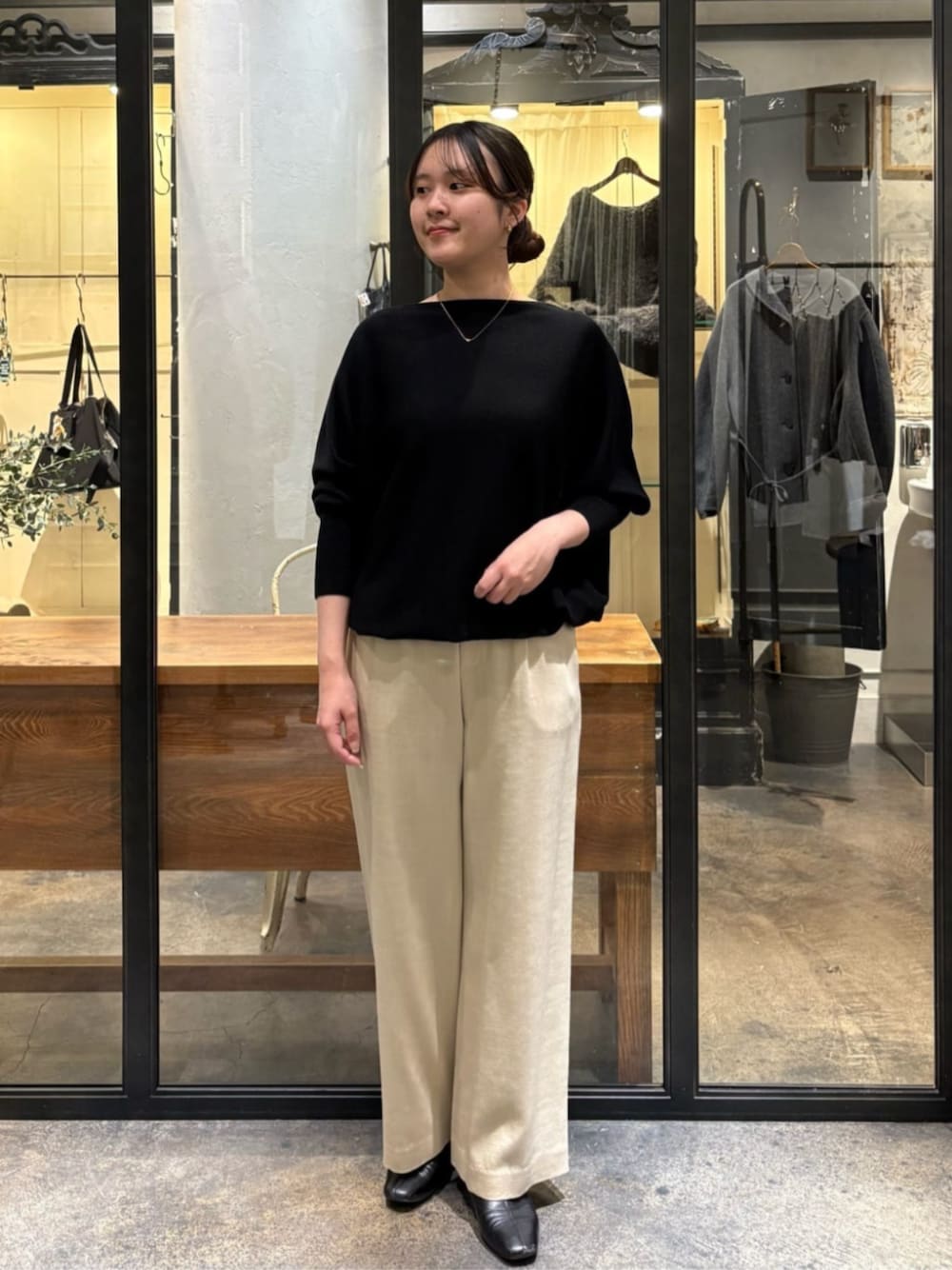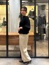 【ニット】着用サイズF ゆったりとしたドルマンスリーブのニット。 体のラインを拾わず、すっきり着られるシルエットです。 程よい首元の開きときゅっとなっている手首のデザインが、よりすっきり見せてくれるポイントです。 裾にはゴムが入っているので、上にあげて着用することでインしなくても決まります。 薄手の生地感なので春先にも活躍しそうなアイテムです。 【パンツ】着用サイズ1 デニムのような風合いがありながら、柔らかい生地感で着心地抜群のワイドパンツ。 ウエストはゴムになっており、紐も付いているため調節可能です。 ワイドシルエットですが、落ち感があるため、ボリューム感が苦手な方にもおすすめ。 162cmで1サイズ着用、くるぶしにかかるくらいの丈感でした。